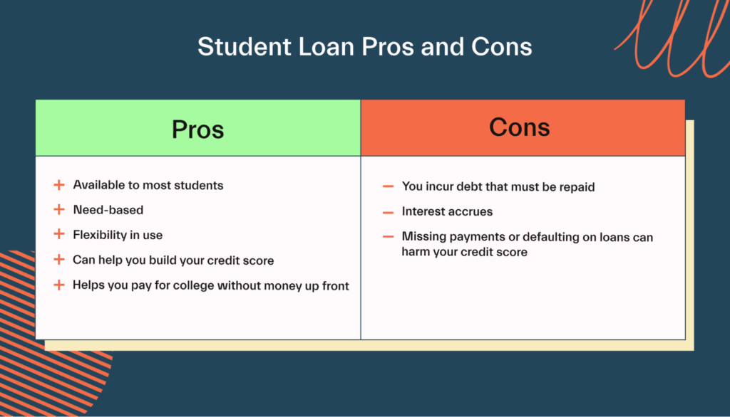 - The long-term cost of loans can be significant, especially with accruing interest. Students should carefully consider the total repayment amount before taking out a loan. A good strategy is to minimize the use of loans and search for every available scholarship possible.